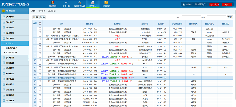 创建固定资产盘点任务单,制定本次盘点计划,通过PDA设备实现对固定资产的盘点